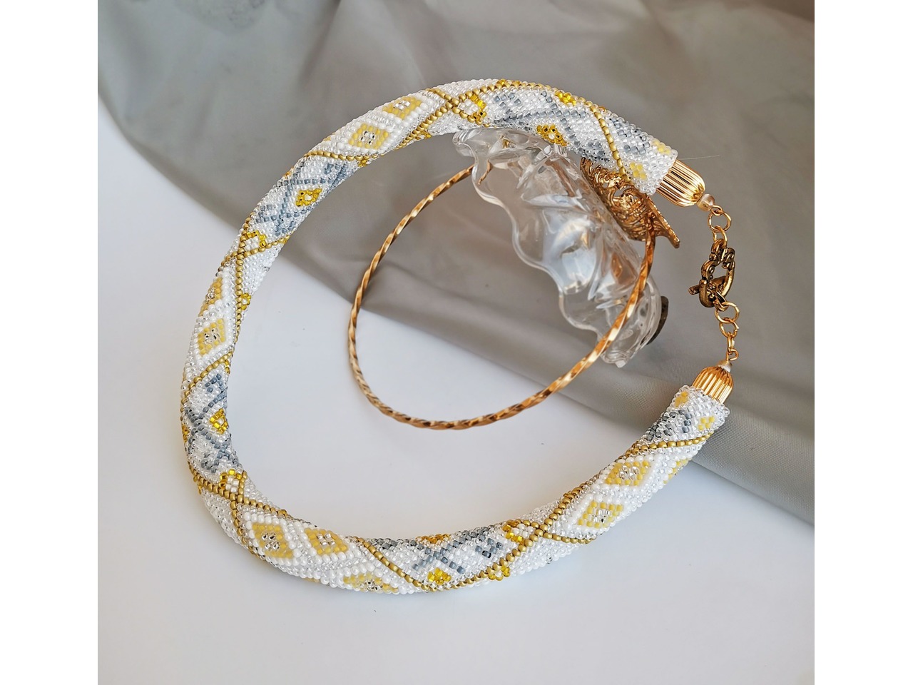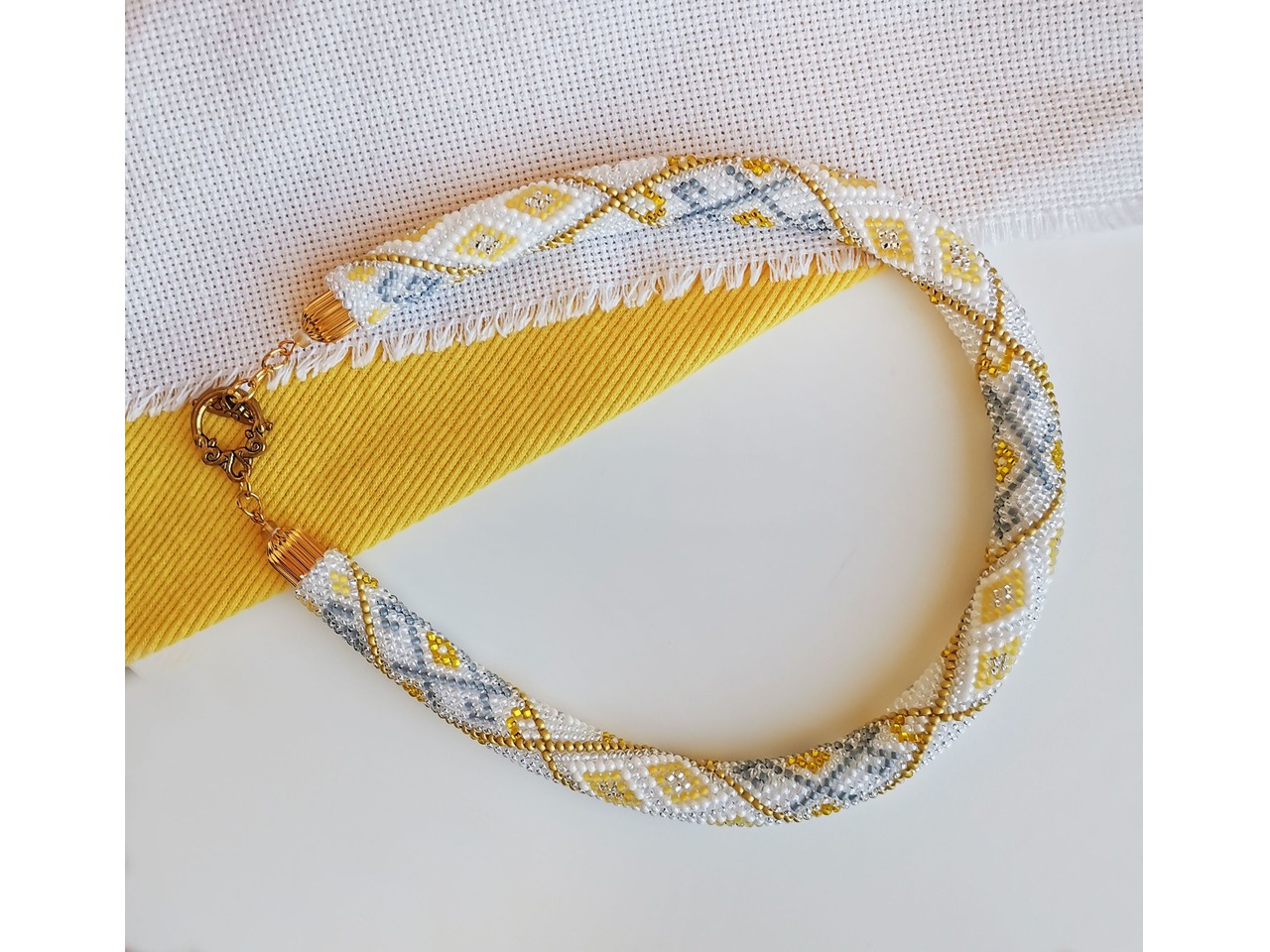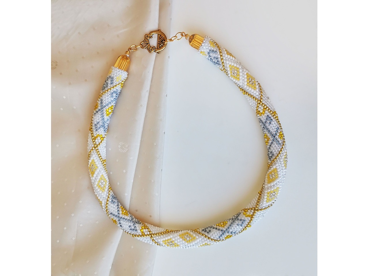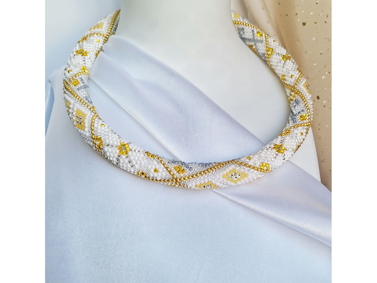 Прикраса із бісеру кольє-джгут "Золота мрiя"