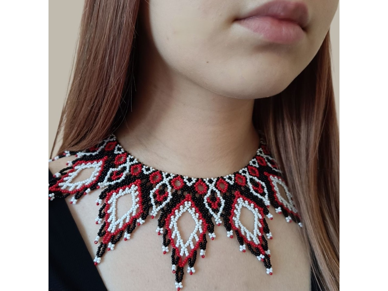 Стильна, красива і неймовірна силянка придасть чарівності власниці прикраси. Виготовлена з чеського бісеру. Довжина 42 см, подовжувач 6 см. Ширина 8 см. До комплекту можна замовити серги кульки діаметр 16 мм, швензи з медичного сплаву - не алергенні. В наявності серги різних кольорів. Під замовлення (15 днів) виготовлю у будь-якому кольорі.