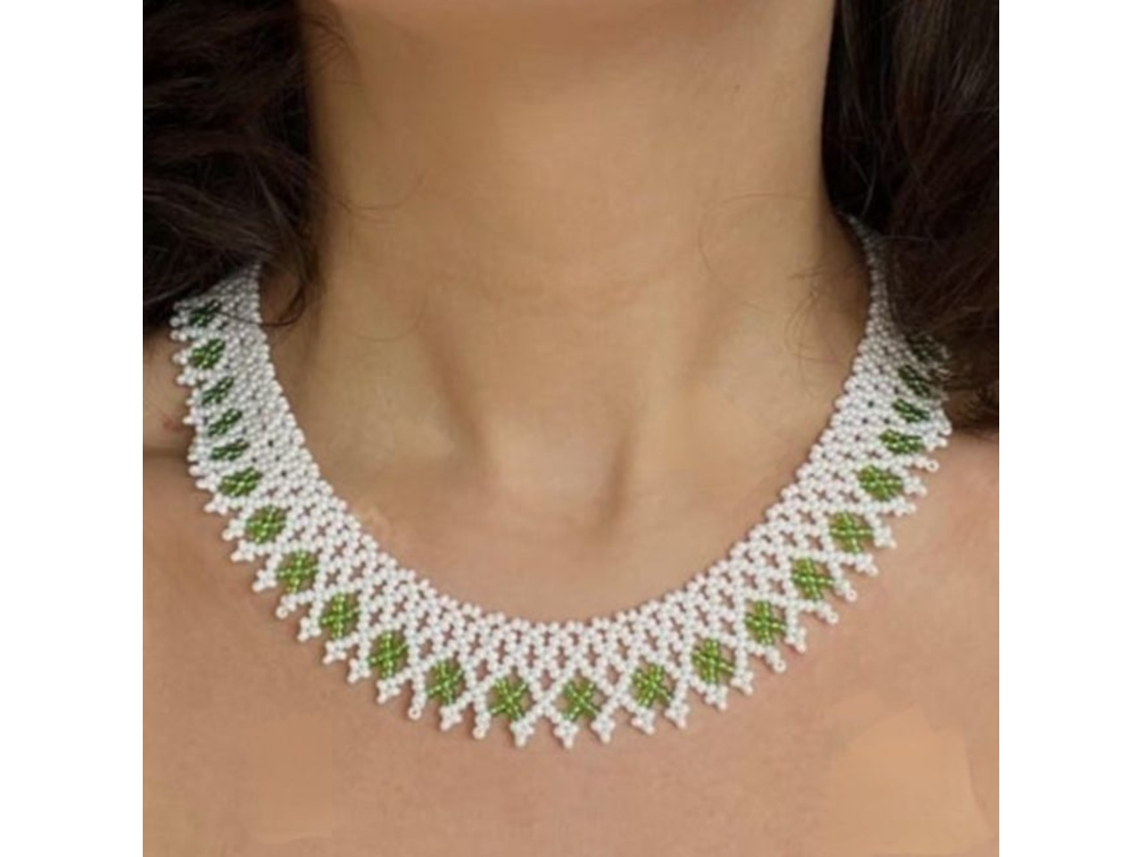 Це намисто — вишукане поєднання традиційного українського стилю та сучасної естетики.Ретельно сплетене вручну з якісного бісеру білого та насиченого червоного кольору, воно стане вдалим акцентом до вишиванки, вечірньої сукні або щоденного образу.