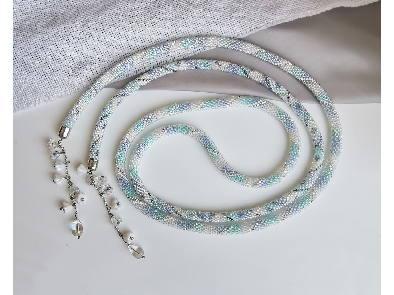 Прикраса-джгут-ларіат із чеського бісеру в ніжному перламутровому кольорі - це оригінальний, стильний і незвичайний аксесуар, який ідеально підійде до будь-якого вбрання. Зробіть свій образ неповторним! Повна довжина 137 см Більше моїх робіт в інст:tatianalevchenko165