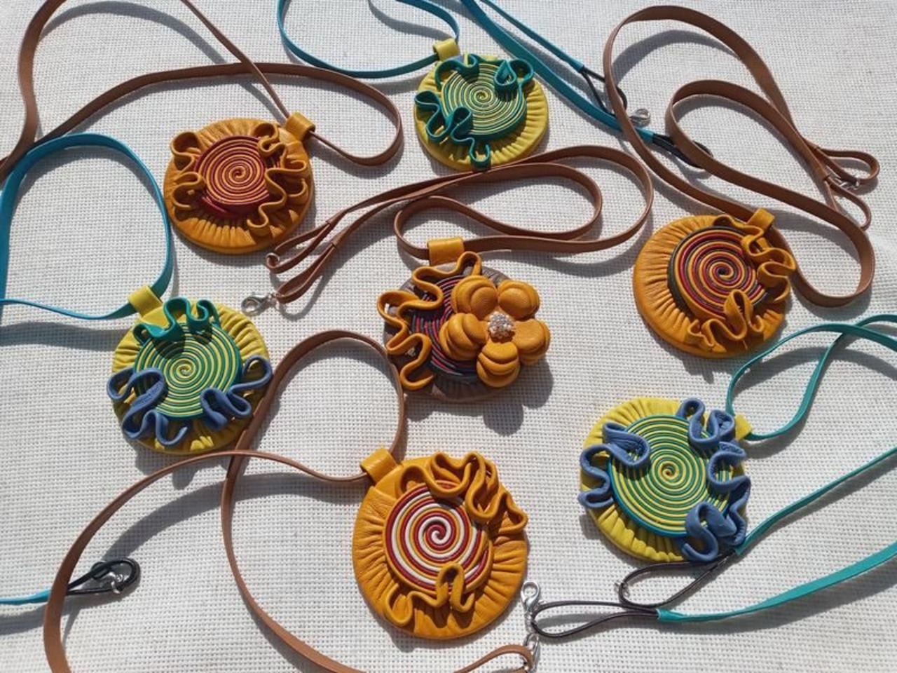 Кожа натуральная. Камни. Мой телефон +380957329050. Продажа по всему миру. Цена указана за одну подвеску.