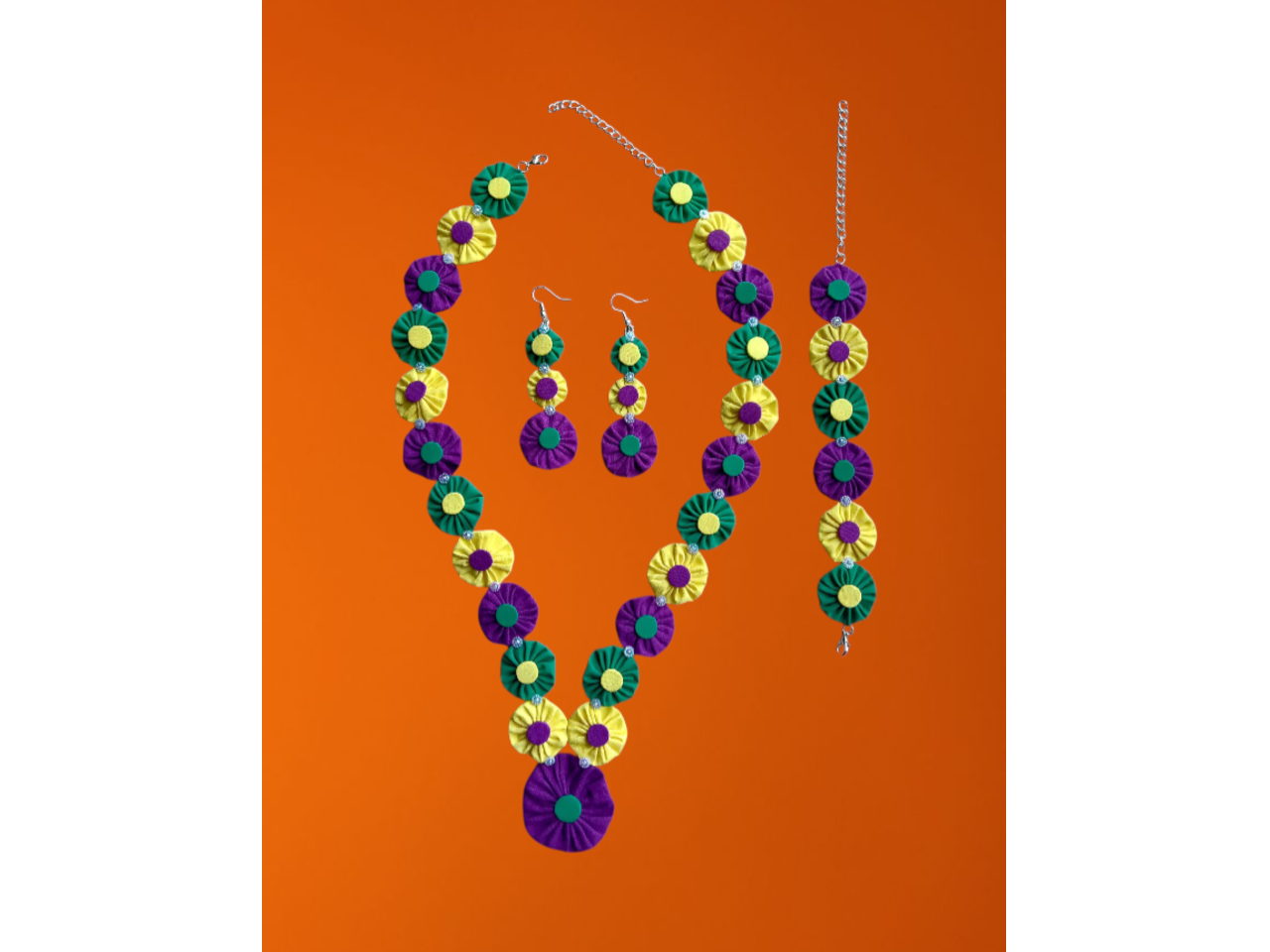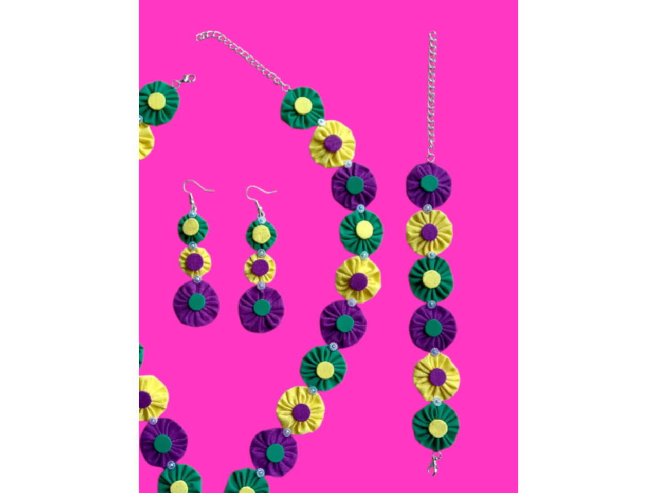 Квітковий набір Чокер має: довжину по внутрішньому краю – 35 см ( + 5 см ланцюжок) ширину ~ 1,4 см Браслет: Довжина 17 см ( плюс 5см цепочка) Сережки: Довжина 4см Виготовлено із: чеського бісеру Всі прикраси можна купити окремо