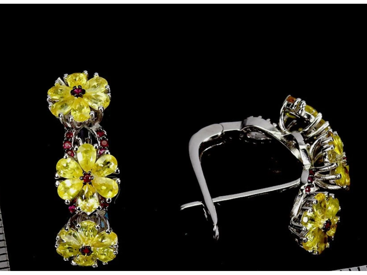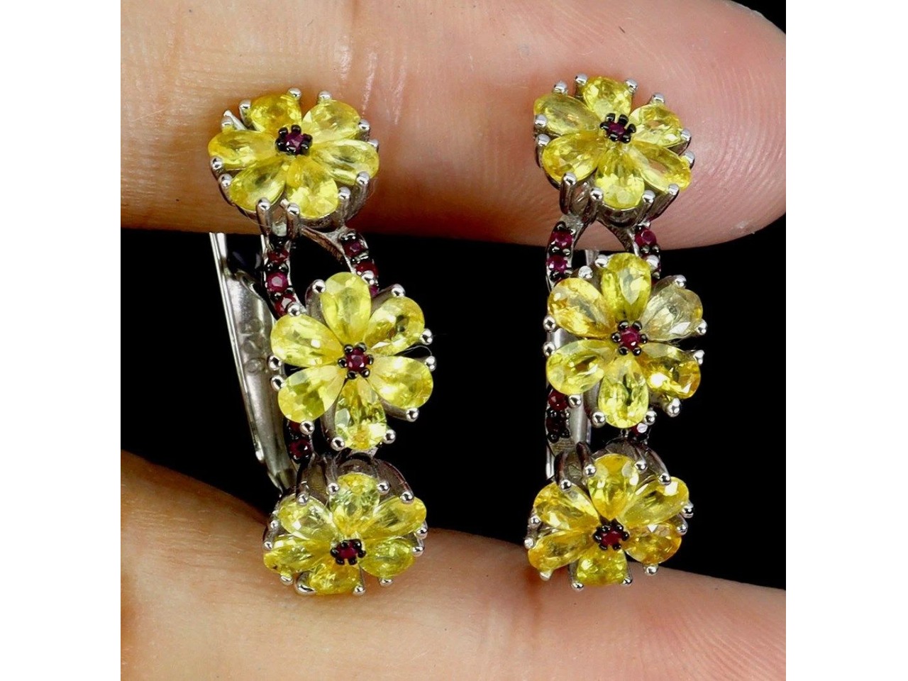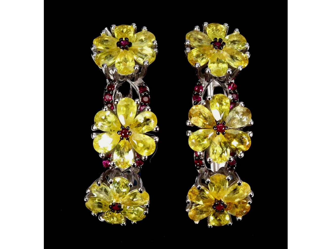 Cеребряные серьги с натуральными желтыми Сапфирами и Рубинами.